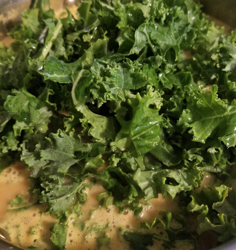 Wash the kale and tear into bite size pieces. Add to the pot.