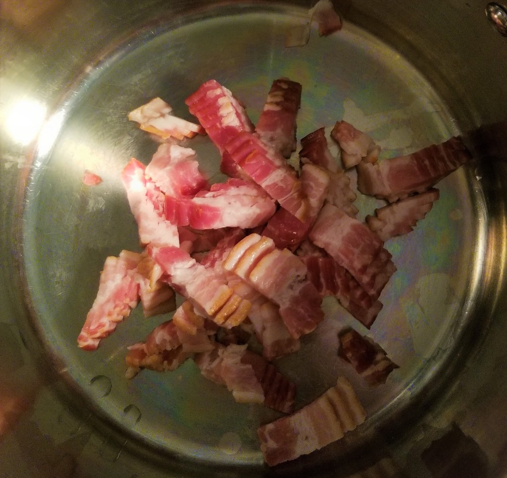 - 1/2 lb. bacon (optional…if you don’t use bacon, add 1 Tbsp. olive oil)