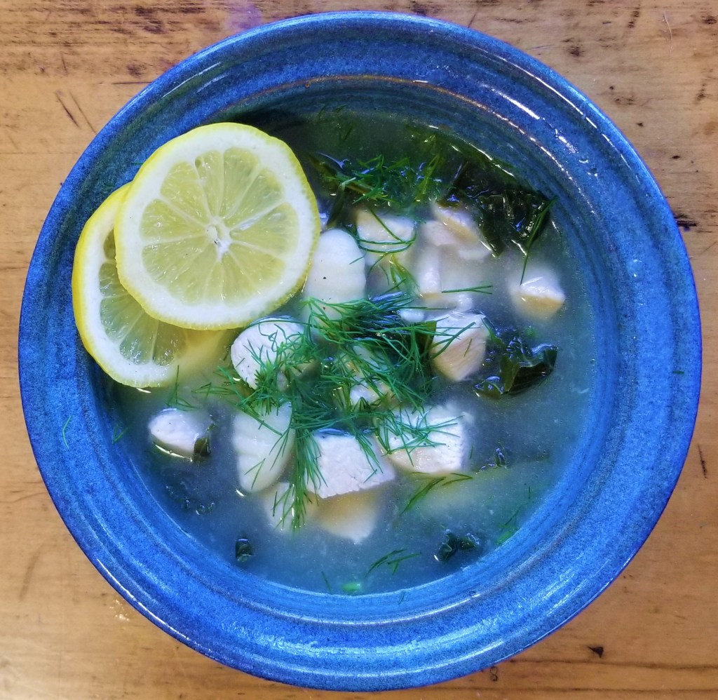 Tear and wash the kale. Add gnocchi to the pot (it only takes a couple minutes to cook). Add kale and turn down the heat. Don’t forget to taste! This is a VERY lemony soup. You may want to add more salt, more garlic, etc. Add two bunches of chopped, fresh dill when ready to serve.