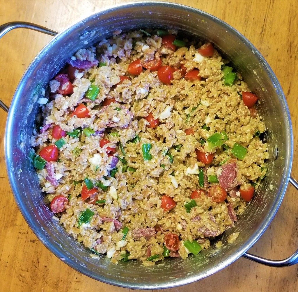 - 3 cups dry risoni – cooked to package directions (I used Trader Joe’s gluten free, chickpea and red lentil risoni. Orzo or even a macaroni would work too!)