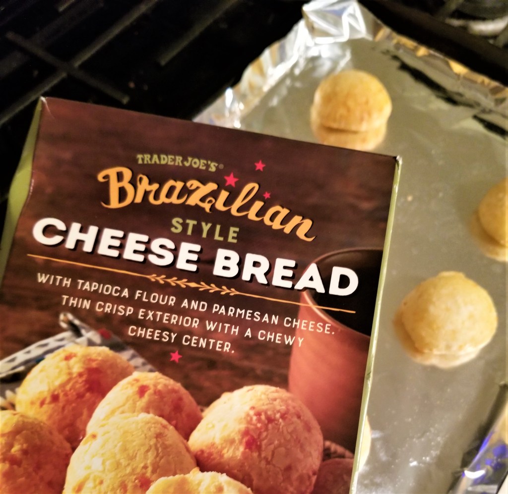 Watch your time and warm your bread of choice in the oven mid-way through. I chose Trader Joe’s gluten free, Brazilian cheesy bread…which gives me LIFE…and only takes 7-8 minutes to heat up in the oven.
