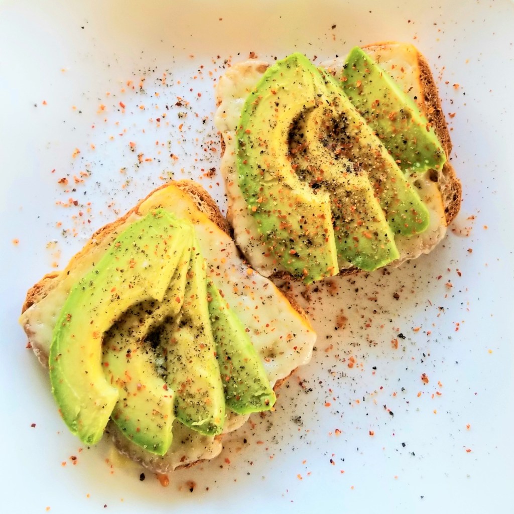 Toast the bread, adding sliced of Muenster halfway through. (You’ll need either a toaster oven or air fryer for this. The oven works too!) Slice the avocado in half, removing the pit. Peel the skin off the outside, then slice into wedges. Place the avocado on top of the cheesy toast and sprinkle with salt, pepper, and Tajin.