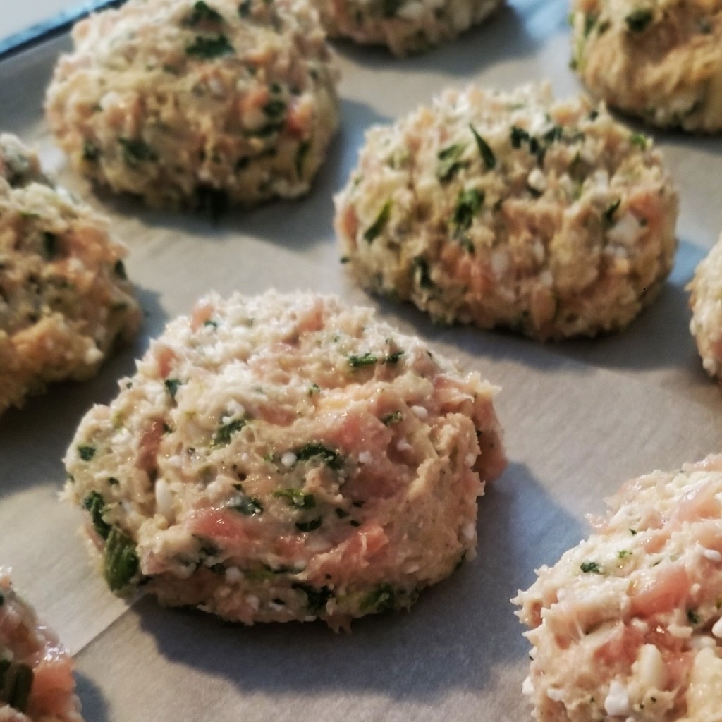 Create biscuit shapes and place on a parchment paper lined cooking sheet. This was sticky business. I tried using gloves, I tried using an ice cream scoop. Bare hands worked best…and it’s worth it in the end.